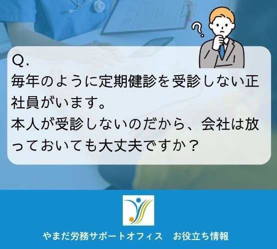 そのため「会社には実施義務」「社員には受診義務」があることを双方で理解して、対処しましょう。