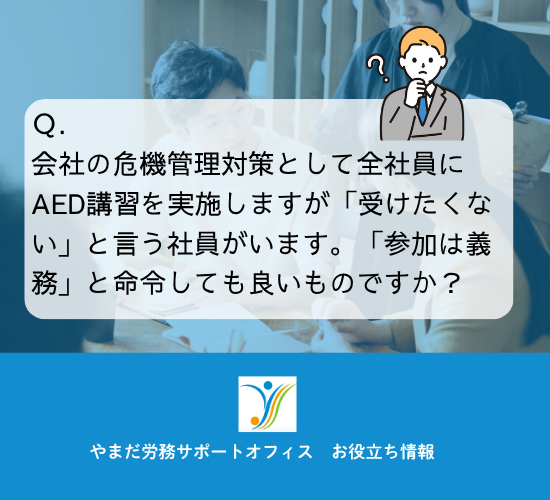 更に、会社には社員への安全配慮義務があり、労働契約や就業規則で「安全衛生教育の一環」として明記した上で、業務命令として実施する場合、一定の合理性があれば受講を求めることは可能と考えられます。